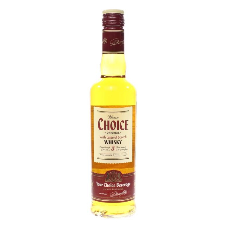 Виски Your Choice обладает приятным сладковатым вкусом с нотками сухофруктов и ароматных пряностей. Напиток цвета светлого янтаря. В аромате явно чувствуется ваниль, орехи. Виски выдерживался 3 года в дубовых бочках, поэтому присутствуют и нотки дуба.